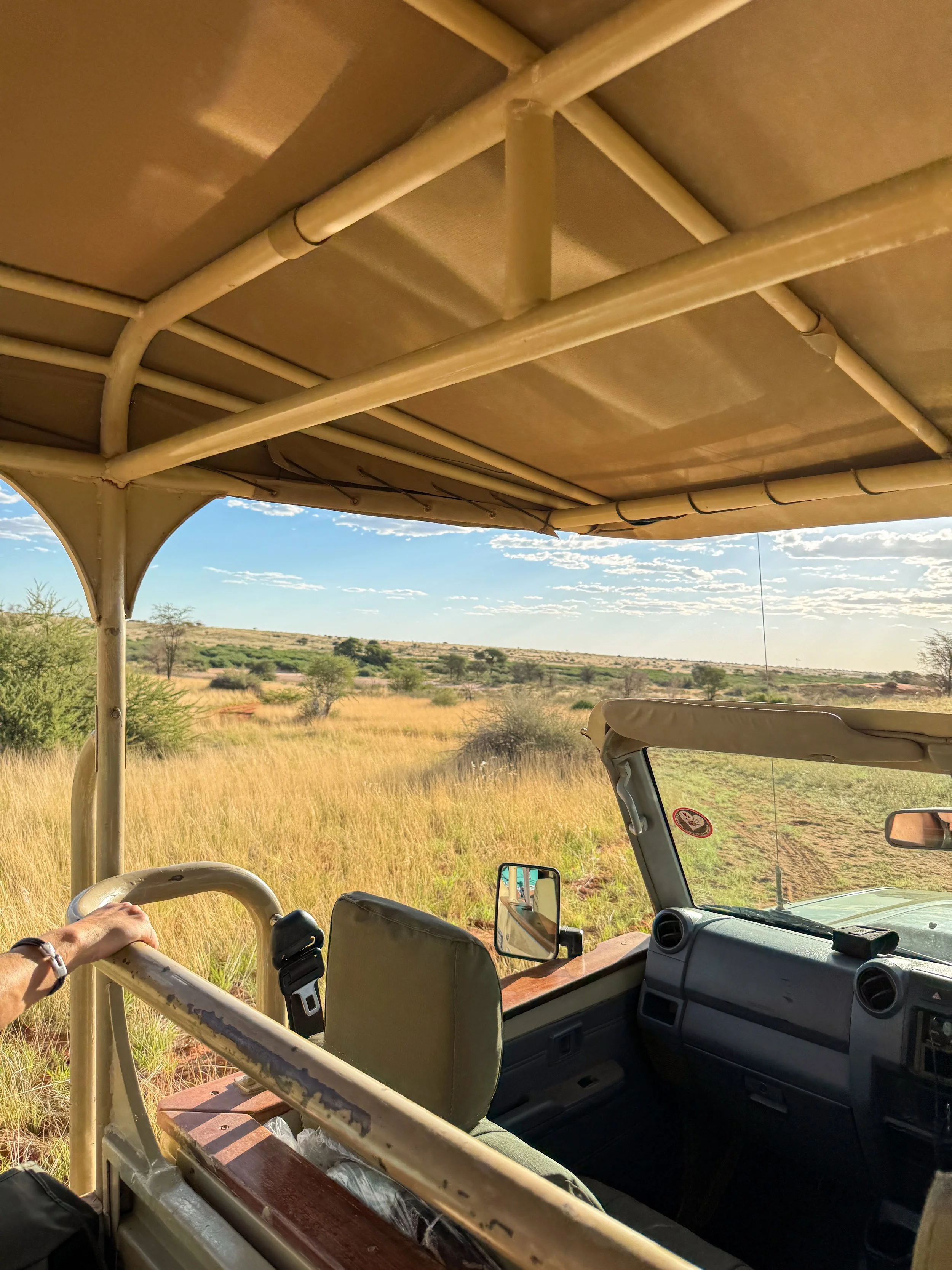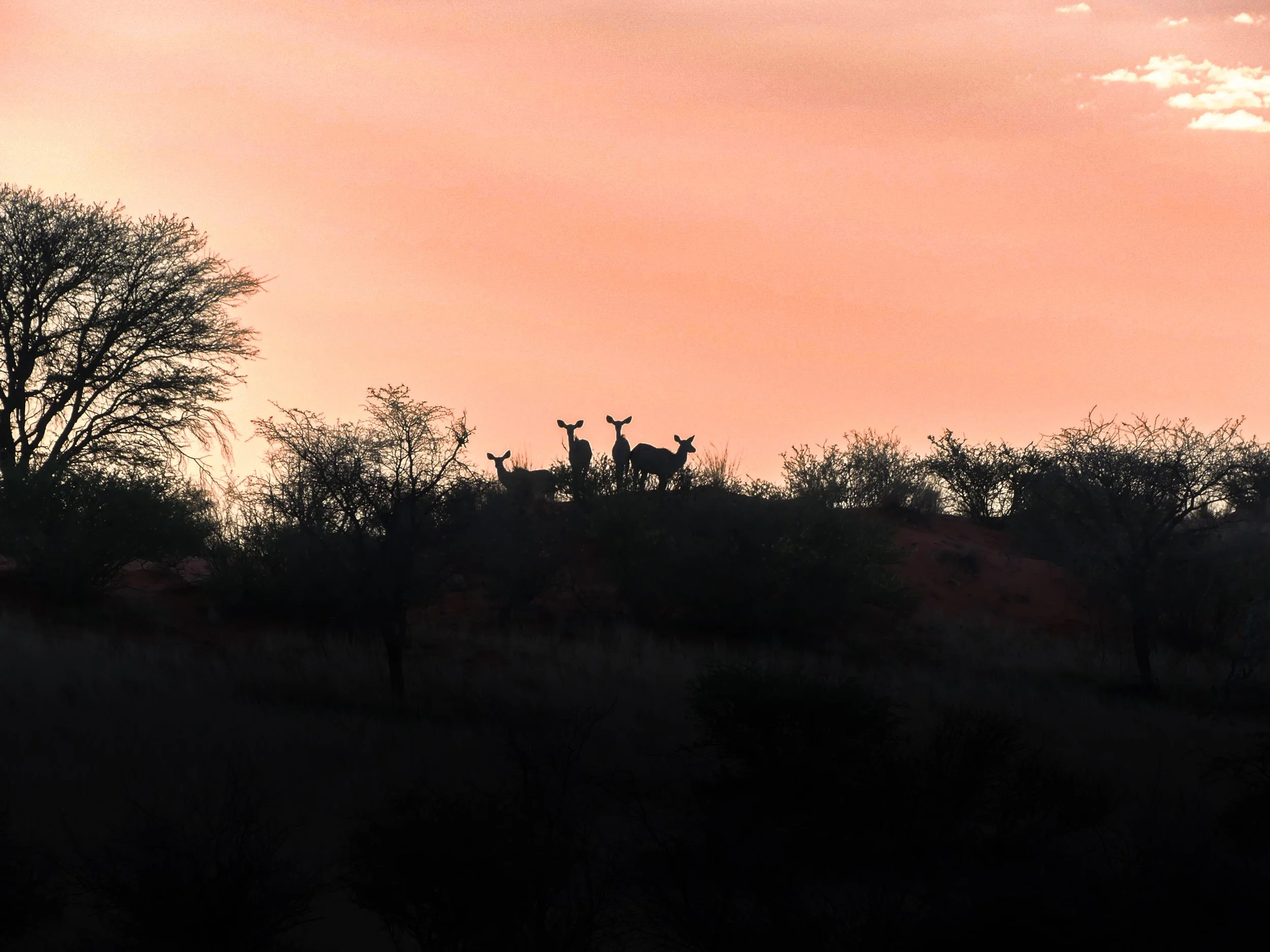 Late-afternoon drives bring the landscape to life as the sun softens and wildlife becomes more active. Ending the day with a sundowner on the red dunes, surrounded by open views, is the perfect moment to enjoy the beauty of the Kalahari.