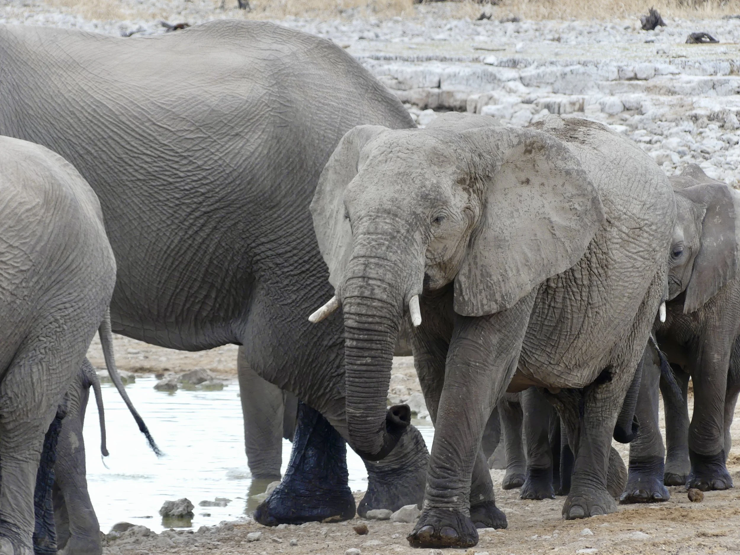 I recommend staying for a couple days to fully discover the area. Etosha has several campsites scattered throughout the park, and it’s worth staying inside if you can. Being based in the park gives you more freedom to explore at your own pace, and many of the camps have waterholes right on site. Sitting by these waterholes, especially in the evening or at night, is a highlight in itself. The Okaukuejo waterhole is the largest and most famous. It’s a great spot to watch elephants gathering, and if you’re lucky, you might even spot rare visitors like black rhinos.